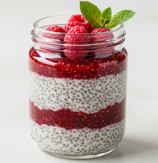 Tento jednoduchý a osviežujúci dezert je ideálny na raňajky, desiatu alebo ako ľahký olovrant. Kombinácia chia semienok, ktoré sú bohaté na vlákninu a omega-3 mastné kyseliny, s naším lahodným malinovým džemom vytvorí chutnú a zdravú pochúťku.